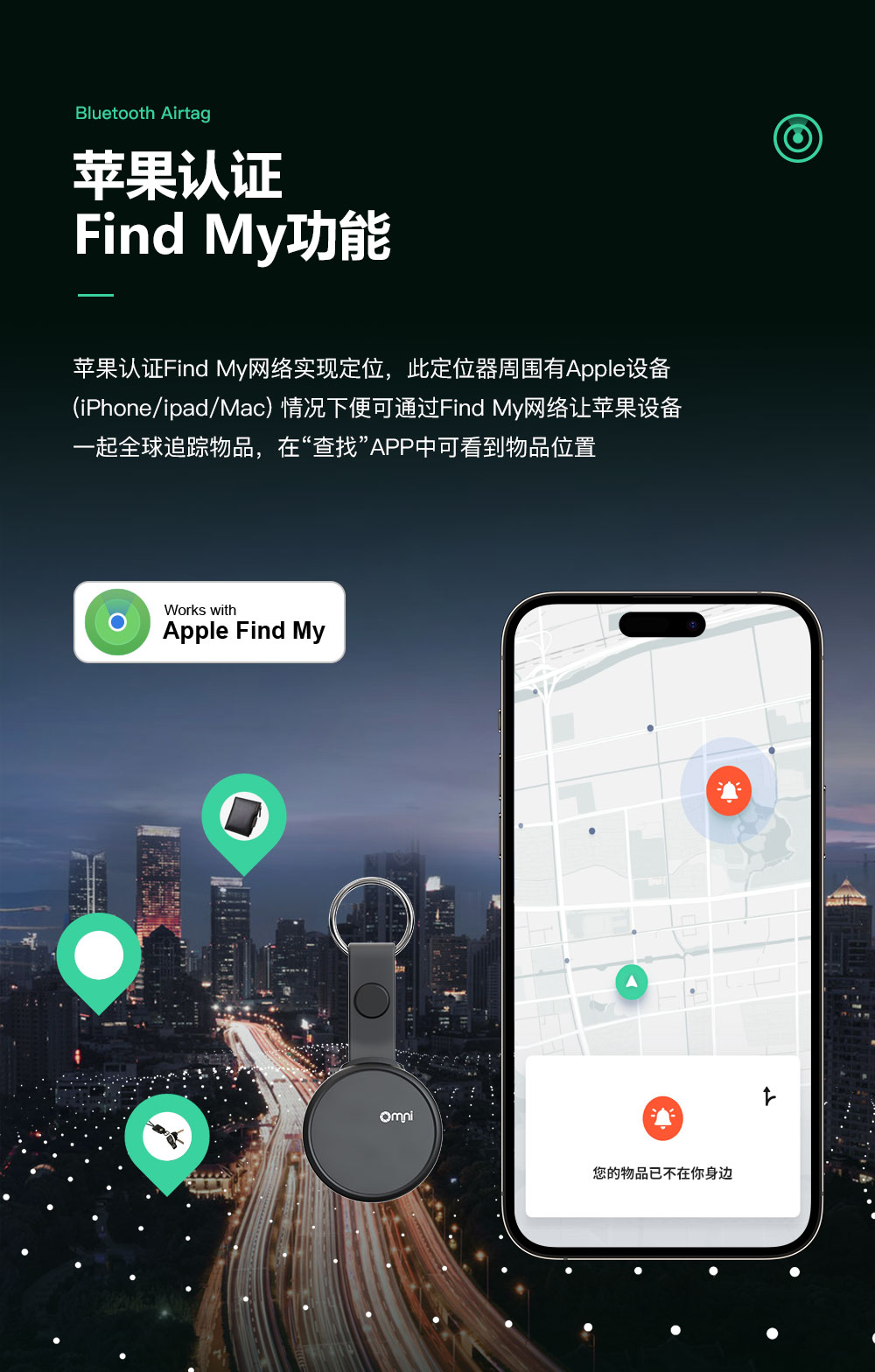 防水功能:歐米藍牙物品定位器防水等級達到IPX6防水,可以小雨中正常使用,具有更好的耐用性。